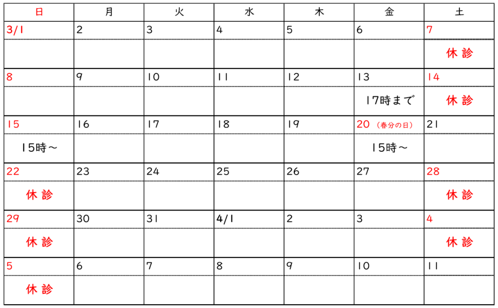 | 月 | 火 | 水 | 木 | 金 | 土 | 日・祝 | |