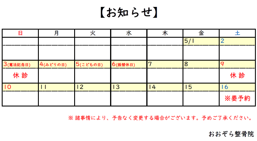 | 14:00~17:00 | 〇 | 〇 | 予約 | 〇 | 〇 | 予約 | 予約 |